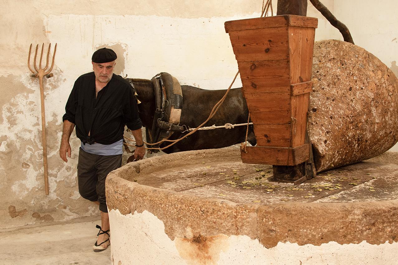 Conservamos muchas de las herramientas de nuestros antepasados, el lagar de pisar la uva, un antiguo molino de sangre para aceite y una parte de la bodega.